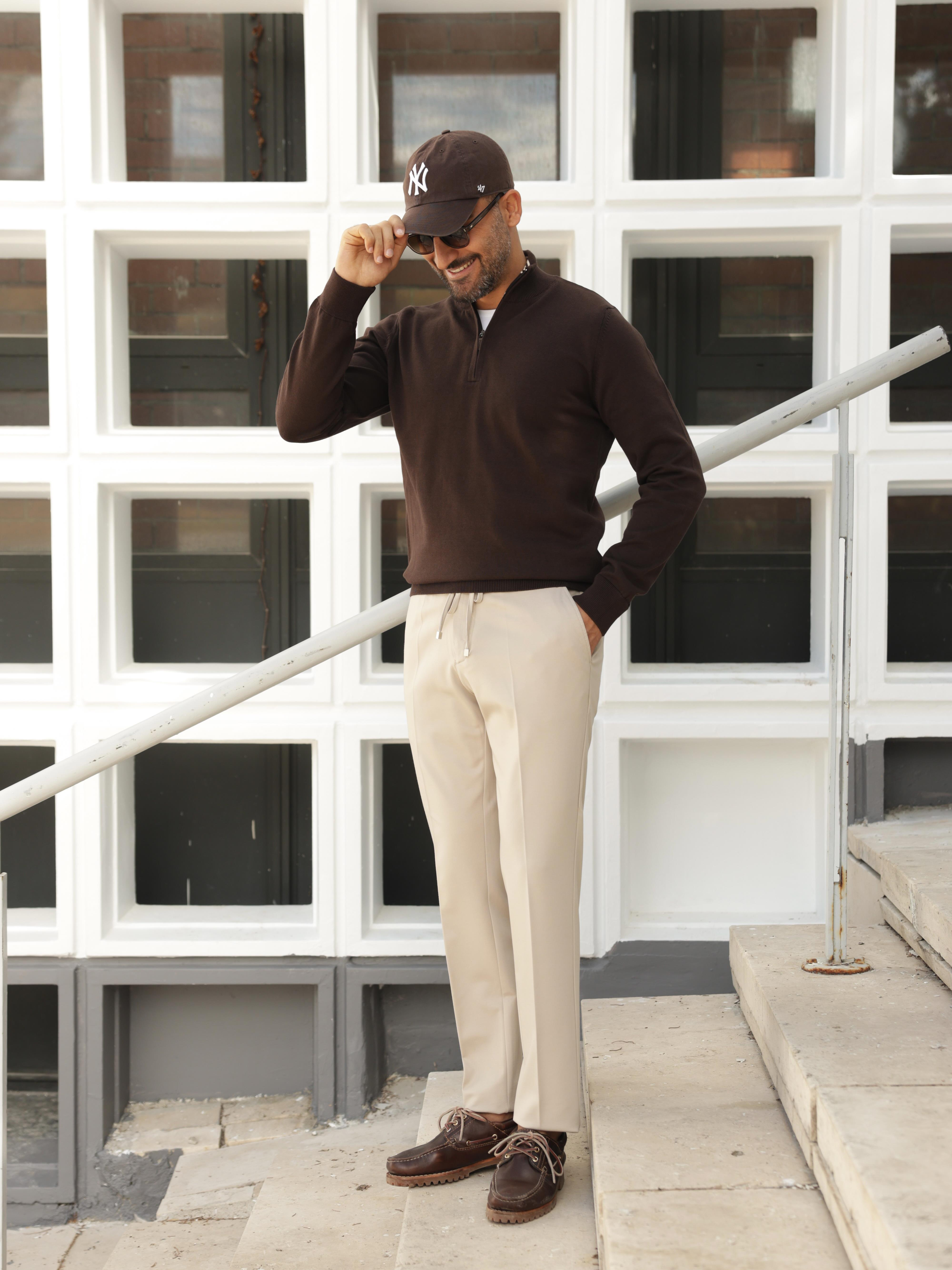 KAHVE DİK YAKA FERMUARLI PAMUK TRİKO