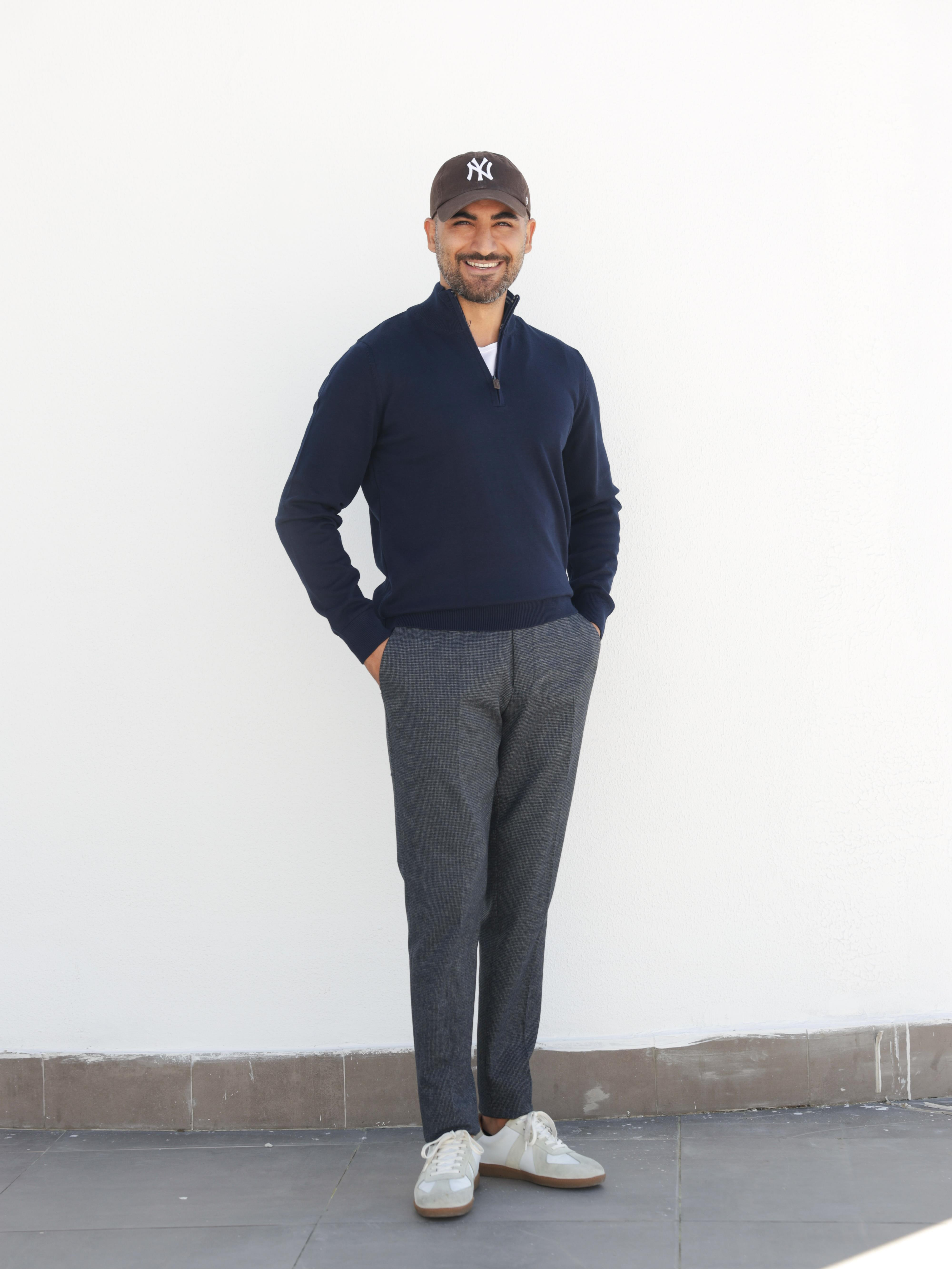 LACİVERT YARIM FERMUARLI DİK YAKA PAMUK TRİKO