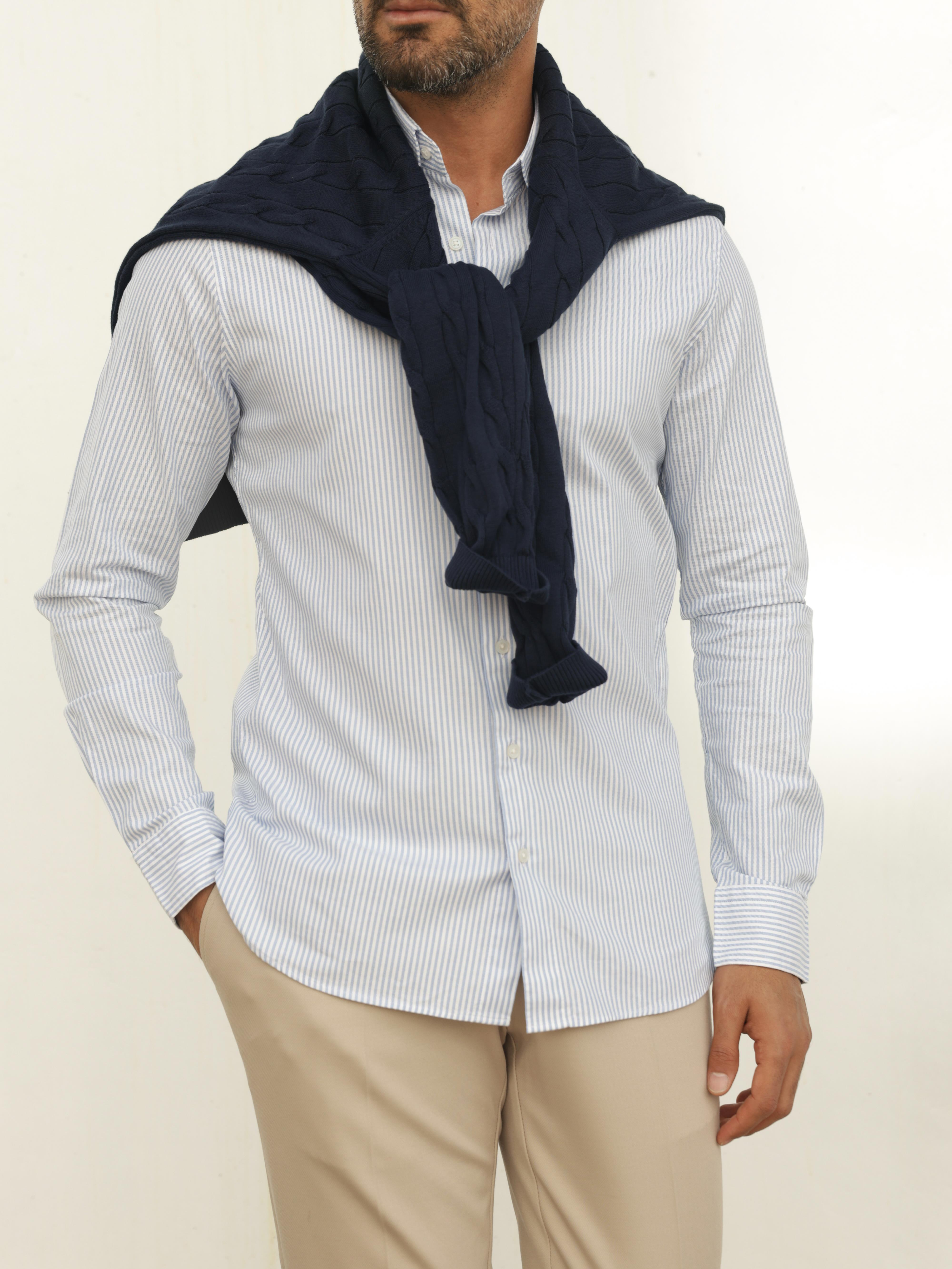 SLİMFİT MAVİ ÇİZGİLİ COTTON GÖMLEK